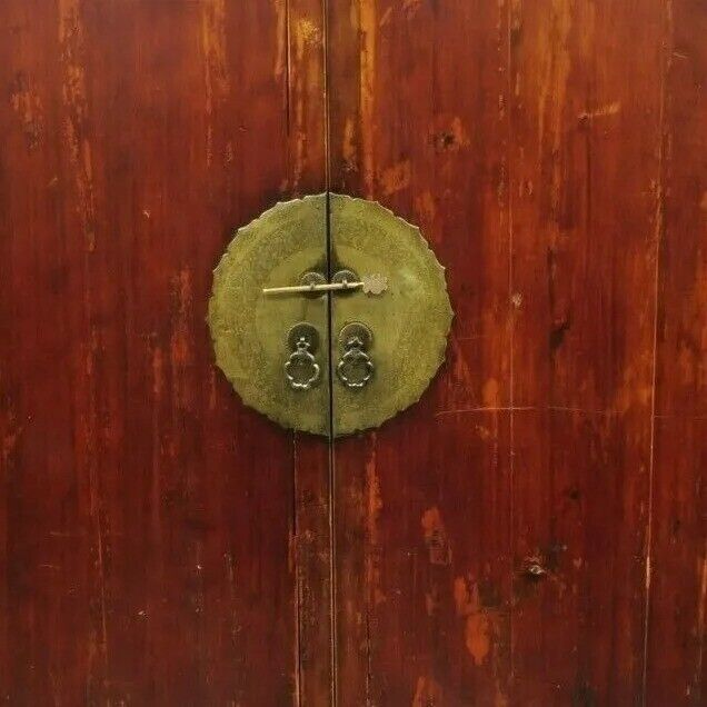 Antique Asian Red Lacquer Oriental Chinese Wedding Cabinet 2 Door Cupboard
