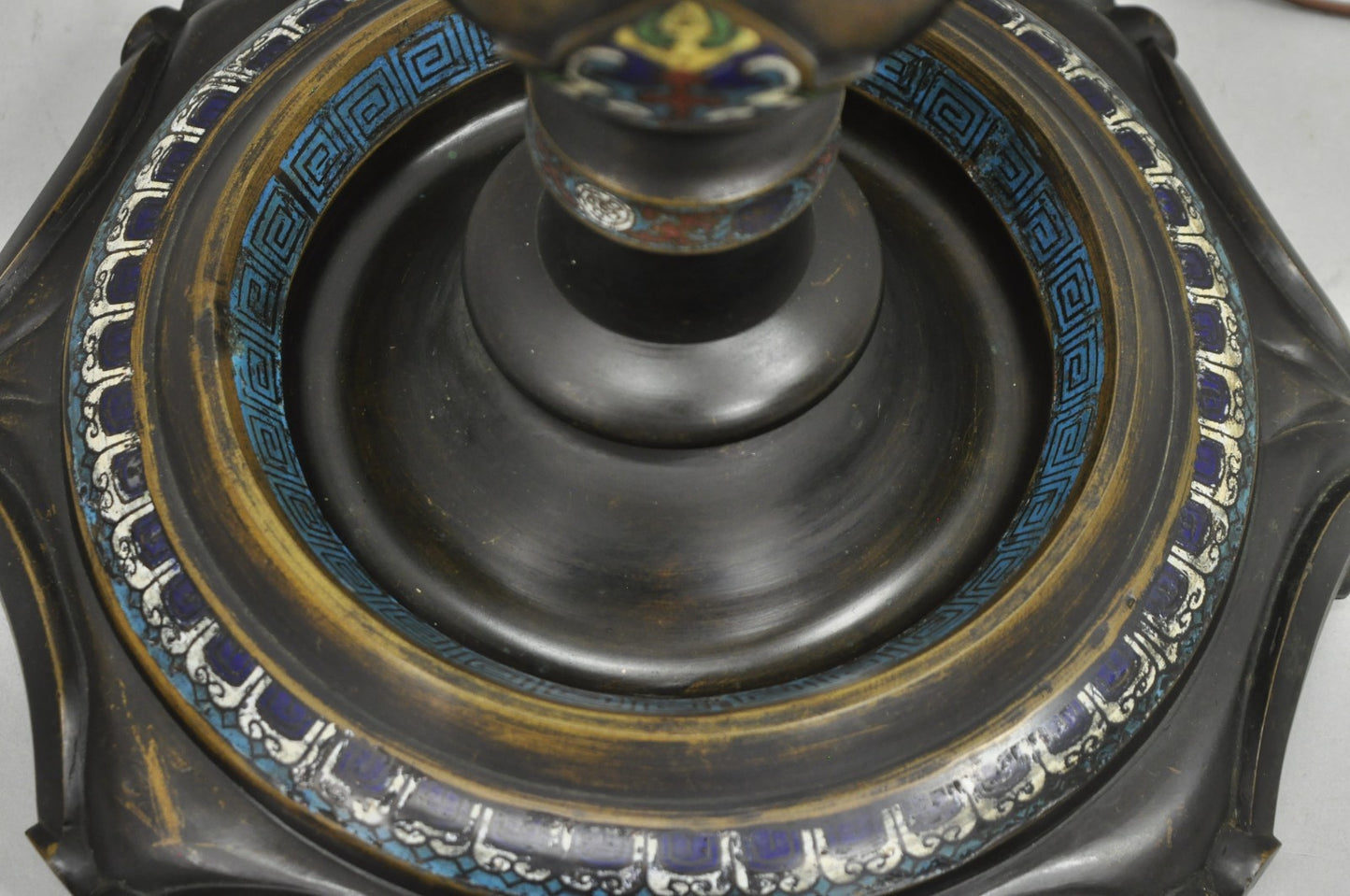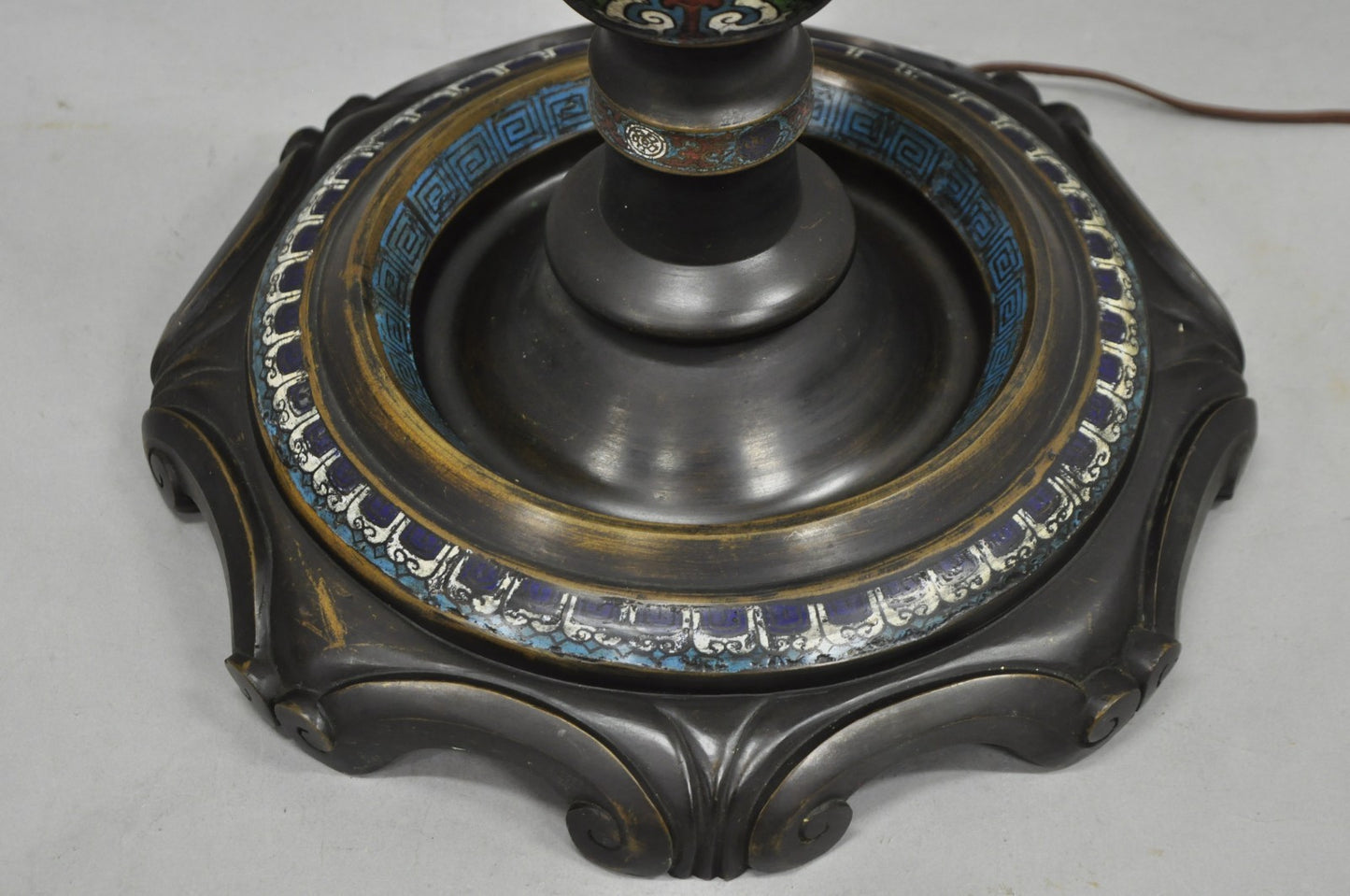 Antique Cloisonne Chinese Patinated Bronze Porcelain Enamel Pole Floor Lamp