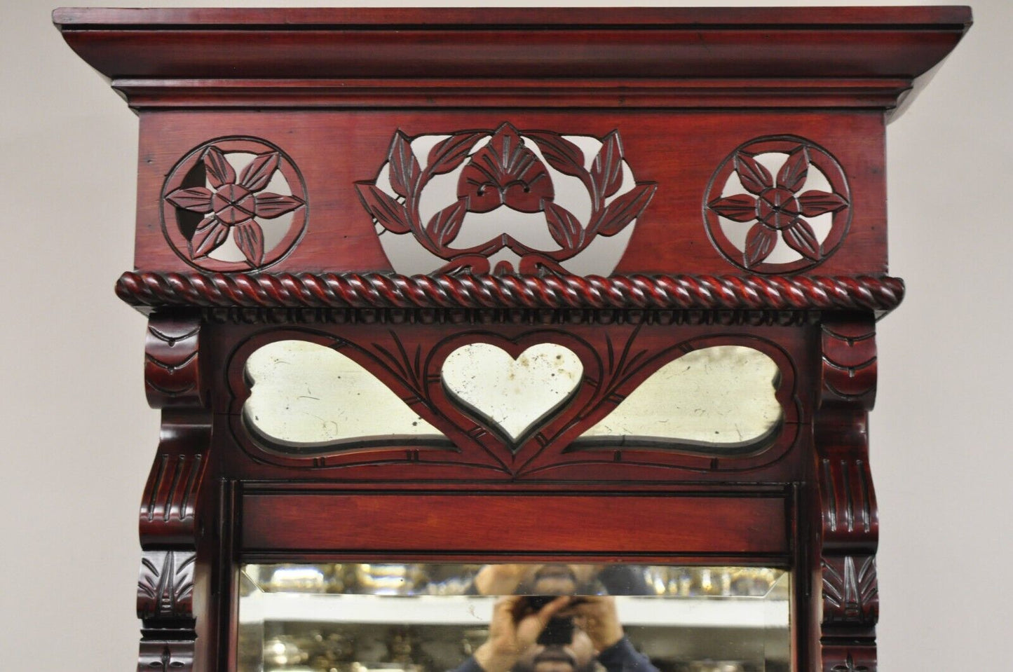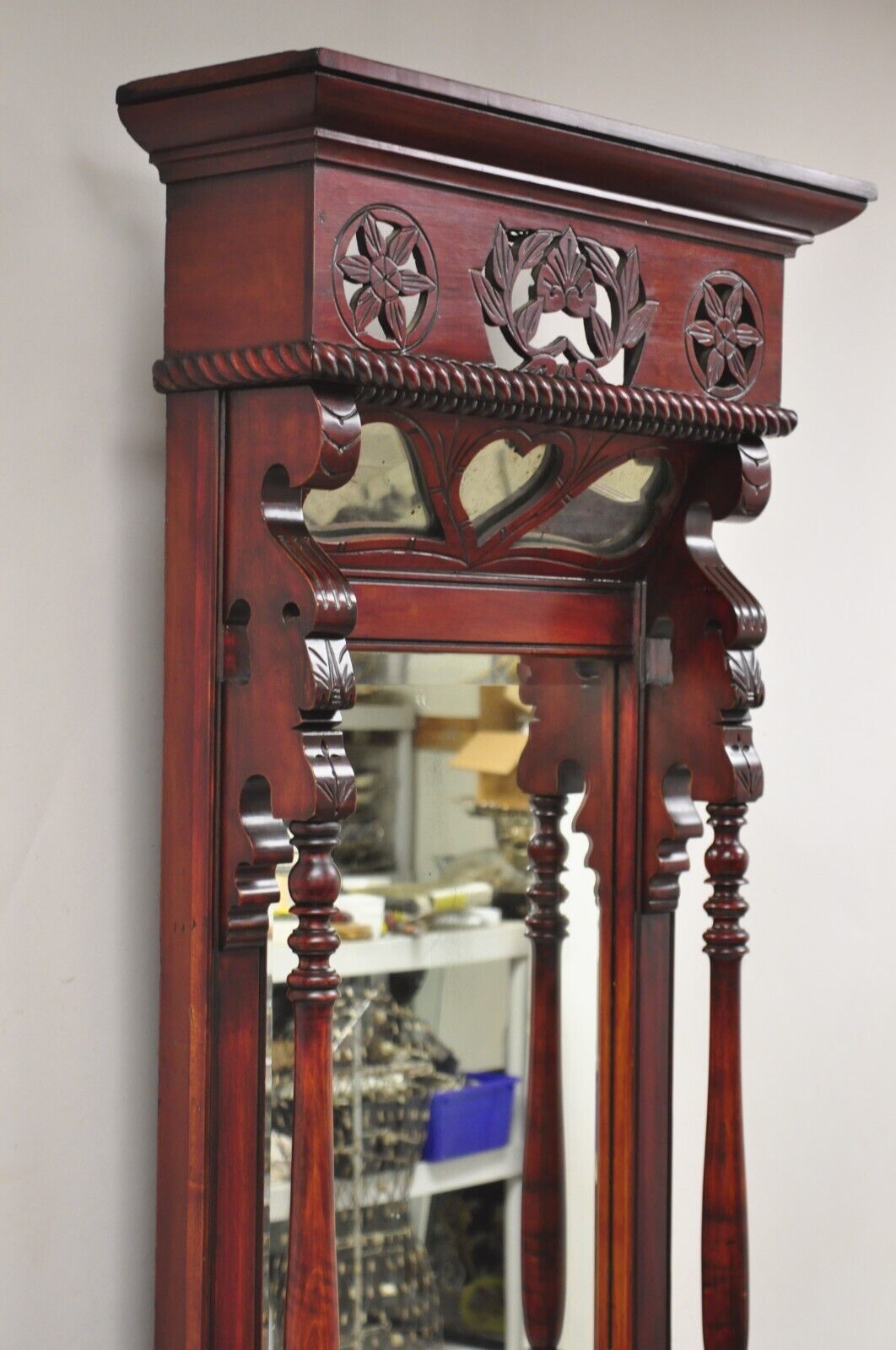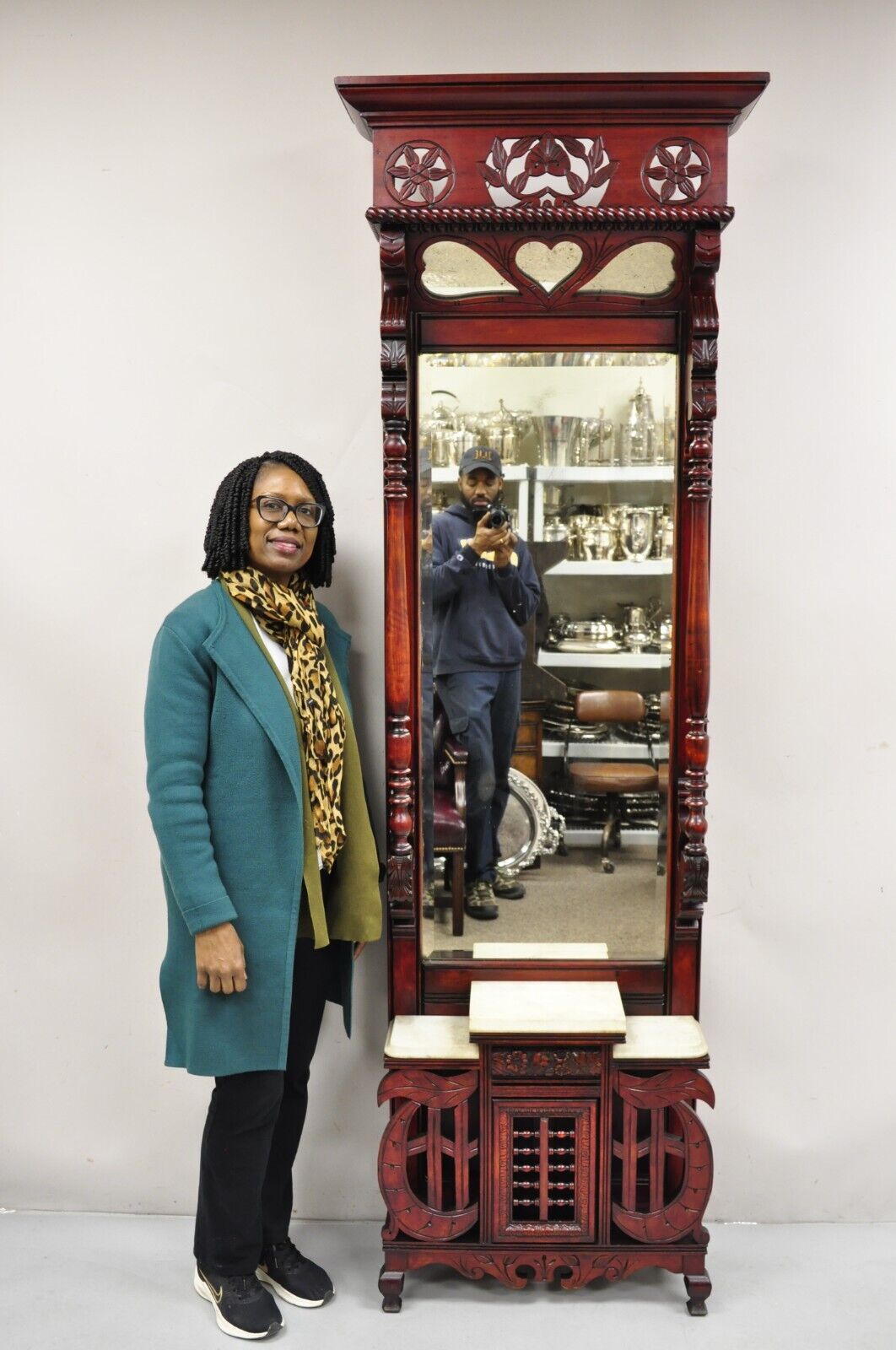 Antique Eastlake Victorian Carved Walnut & Marble Tall Pier Mirror Hall Tree
