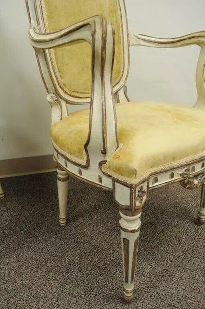 Antique Italian Venetian Cream Distress Painted Carved Wood Arm Chairs - a Pair