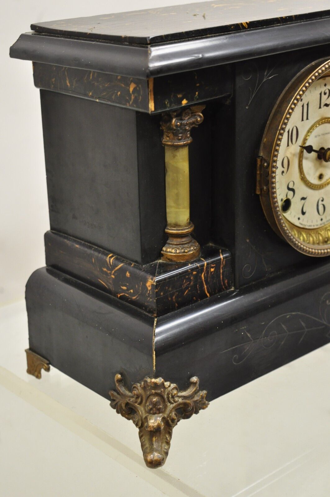 Antique Seth Thomas Adamantine Victorian Faux Marble Shelf Mantel Clock