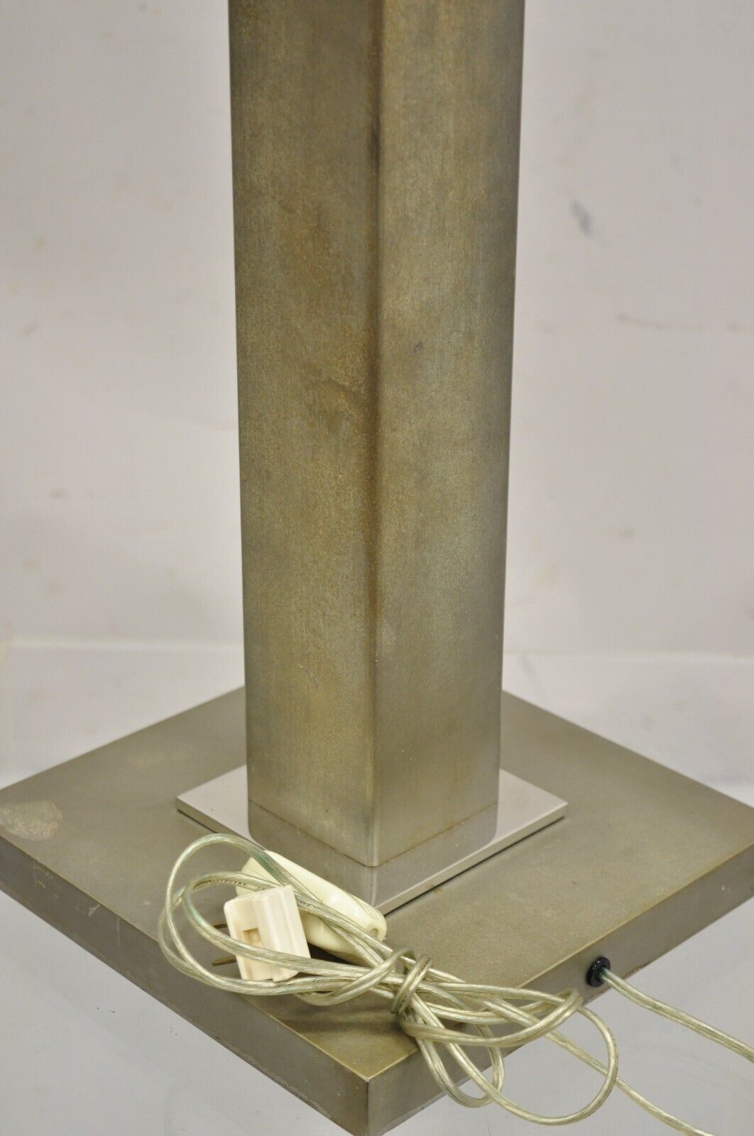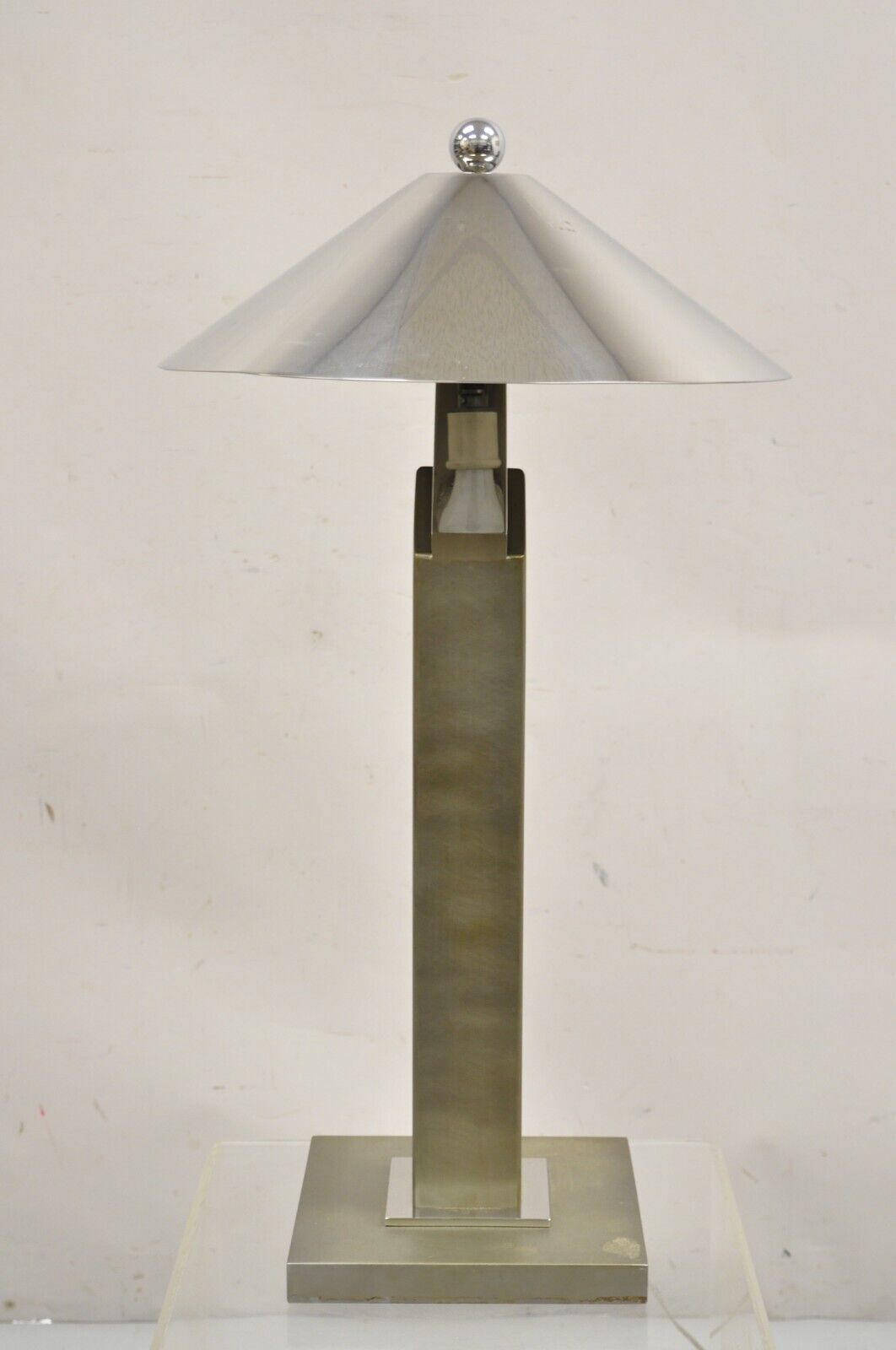 "Arquitectura" Skyscraper Steel Metal Table Lamp by Sergio Orozco for Brueton. Item features a polished metal shade, brushed metal base, clean Modernist lines, sleek sculptural form. Circa Late 20th Century.