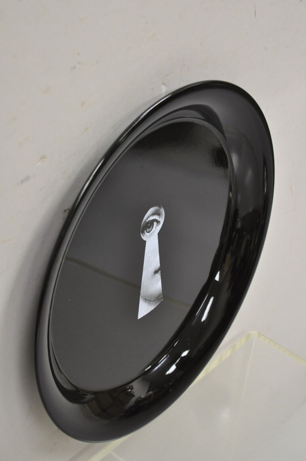 Fornasetti Milano Italy Serratura Black and White Keyhole Round Platter Tray