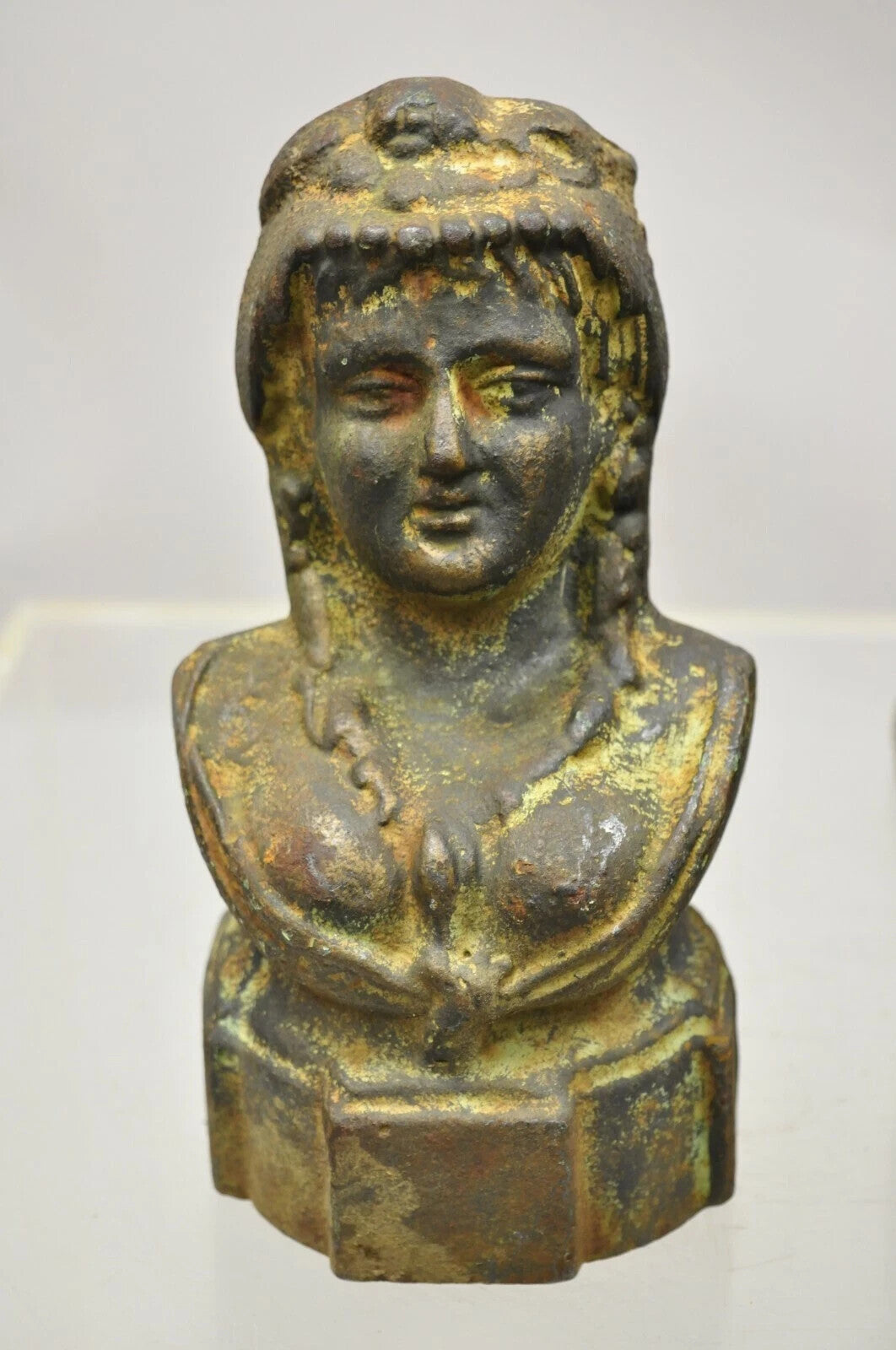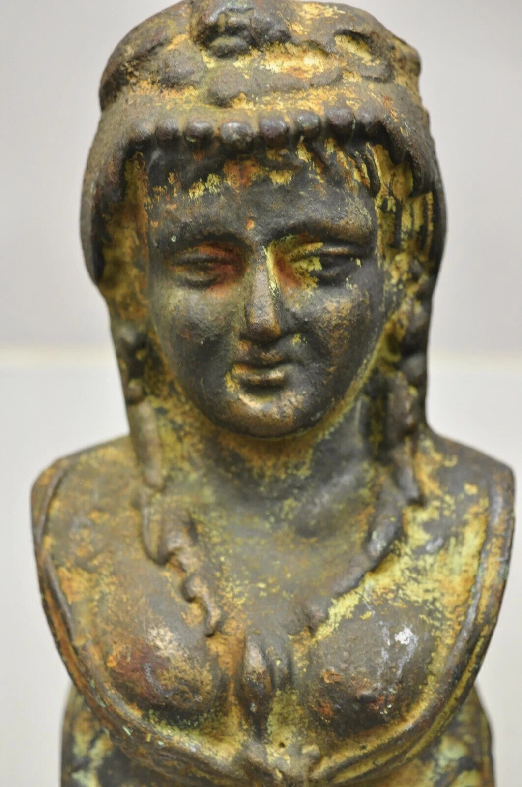 French Victorian Style Cast Iron Figural Women Bust Maiden Form Boot Scraper. Item features heavy cast iron female forms, distressed finish, quality craftsmanship, great style and form. approx. 10 lbs each. Great for use in fireplace. Circa Late 20th Century. Measurements: 8" H x 4.25" W x 9.25" D. *Multiple quantity available. Price is per piece*
