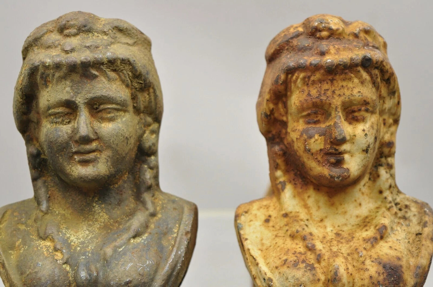 French Victorian Style Cast Iron Figural Women Bust Maiden Form Boot Scraper (B). Item features heavy cast iron female form, distressed finish, quality craftsmanship, great style and form. Approx. 10 lbs. Great for use in a fireplace. *More available in a separate listing*. Circa Late 20th Century. Measurements: 8" H x 4.25" W x 9.25" D