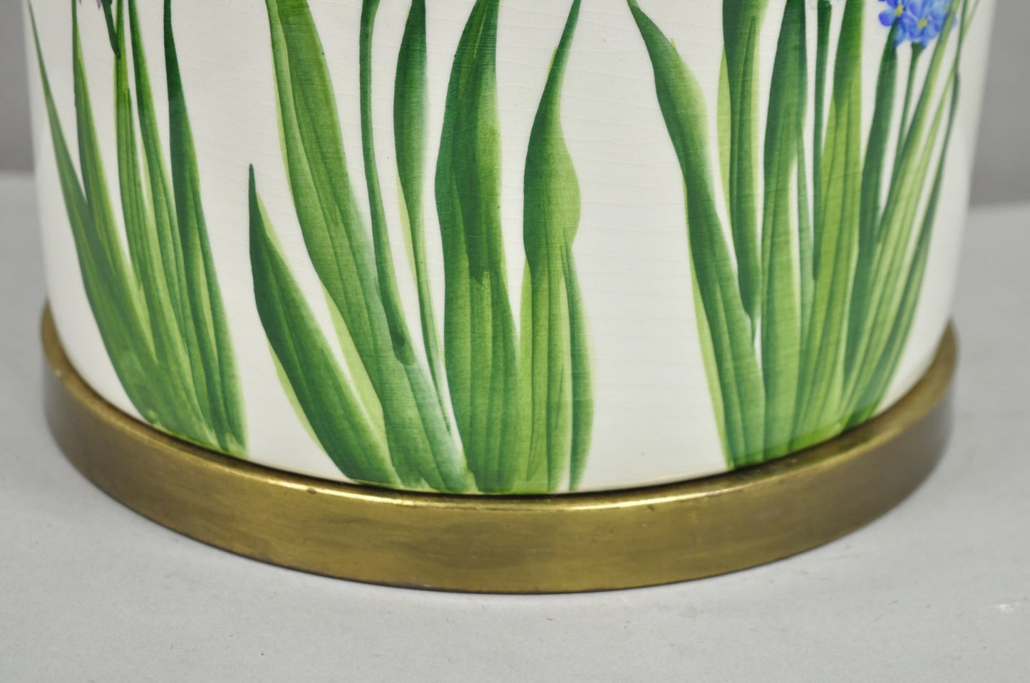 Vintage Paul Hanson French Country Crackle Glazed Porcelain Jardiniere Butterfly & Flower Table Lamp. Circa Late 20th Century. Measurements: 30" H (to finial) x 20" H (to light socket) x 10" W x 10" D. {3-Way (Yes)}, (Location: Section 2)