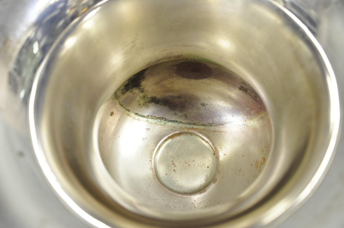 Antique Victorian Style Silver Plated Potbelly Trophy Cup Champagne Chiller Bar Ice Bucket by English Silver Mfg. Corp. Circa Early 20th Century. Measurements: 10.5" H x 11" W x 9.5" D.