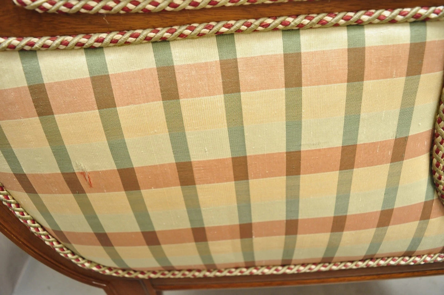 Condition: A few minor spots here and there. Small rip to fabric on side (see pic 9). Very good pre-owned condition being structurally sound with age appropriate signs of normal use as pictured. Overall very nice. Please review all images as they are considered part of the item description.