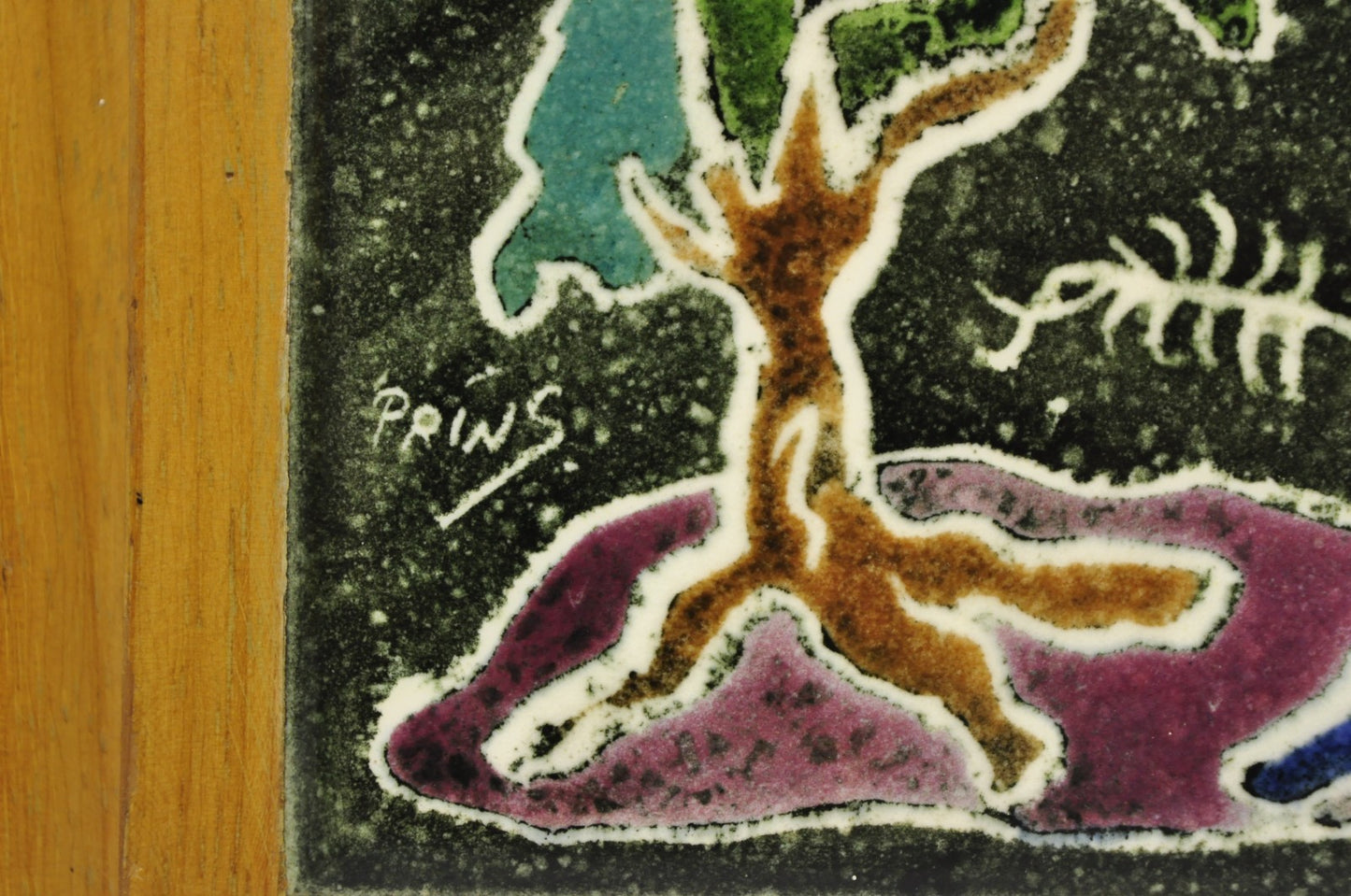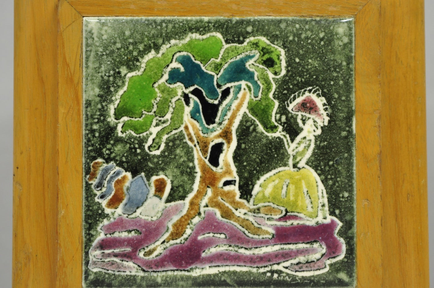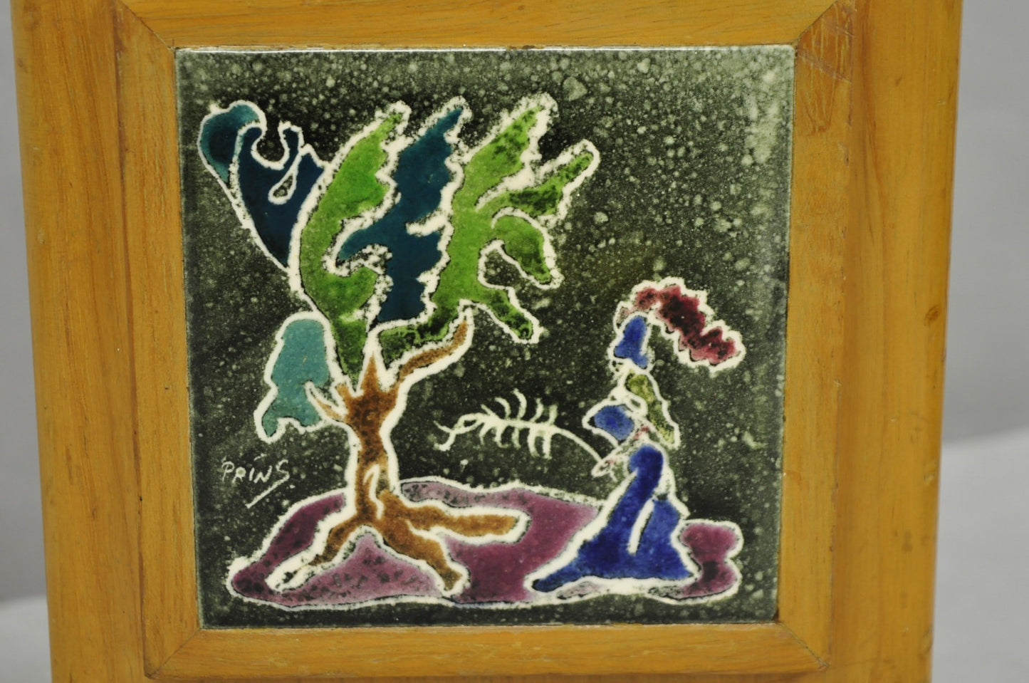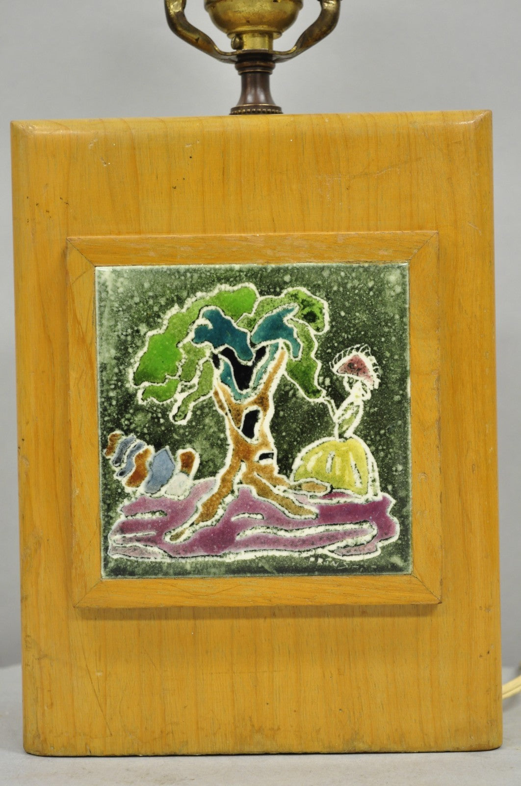 Vintage J. Warner Prins Tile Mid Century Modern Cerused Wood Small Table Lamp