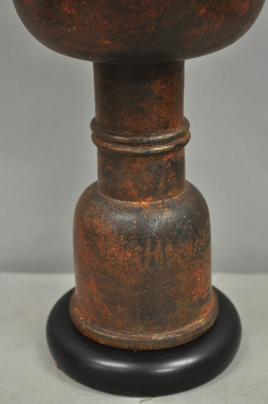 Vintage Mid Century Modern Red Ceramic Brutalist Pottery Sculpted 2 Tier "Fountain" Table Lamp attributed to Bitossi, Italy (Very rare model). Circa Mid 20th Century. Measurements: 38" H (to finial) x 26" H (to light socket) x 9" W x 9" D. {3-Way (Yes)}, (Location: Section 2)