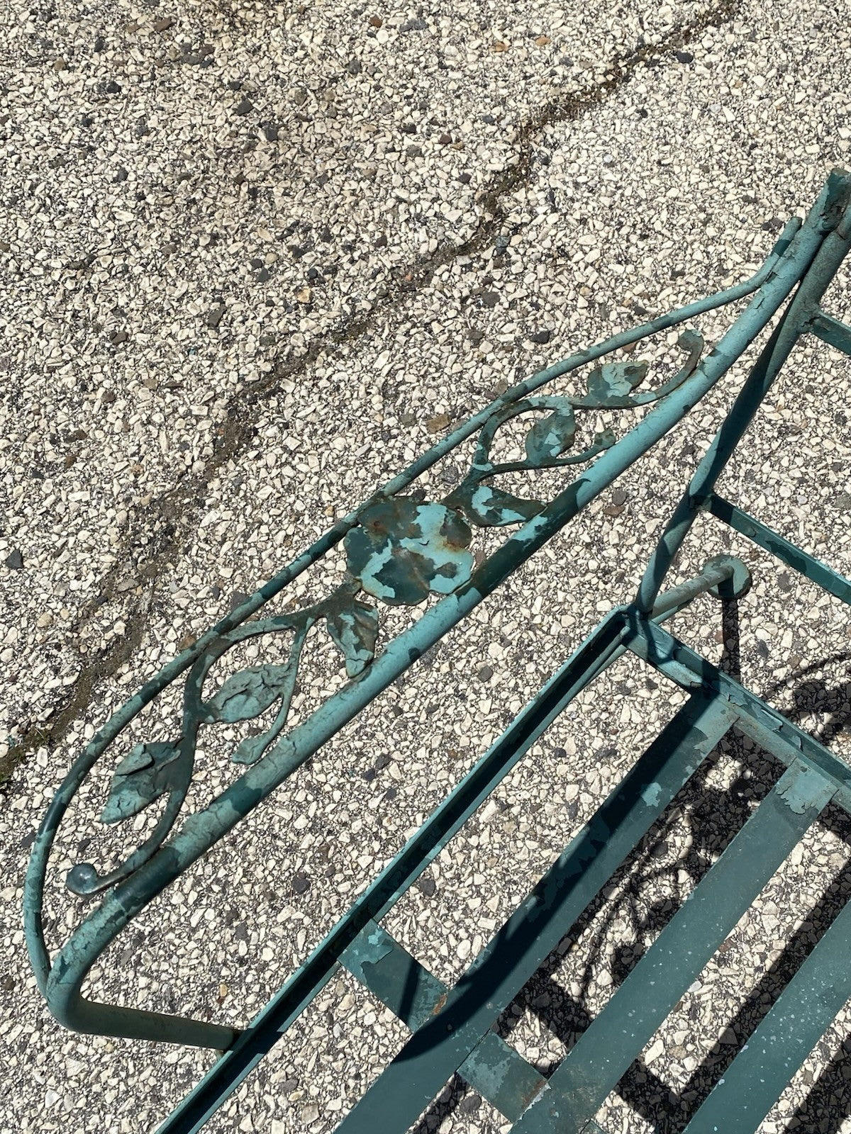 Condition: No cushions. Paint loss and paint chipping throughout with examples pictured. Great to refurbish/re-paint. Structurally sound. Overall very nice. Please review all images as they are considered part of the item description.